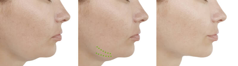 The initial results of Double Chin Reduction can be seen almost immediately after the treatment. The collagen fibres of the treated area tighten almost immediately, and there is a visible loss of fat. Resulting in slimming and contouring of chin and jowls.